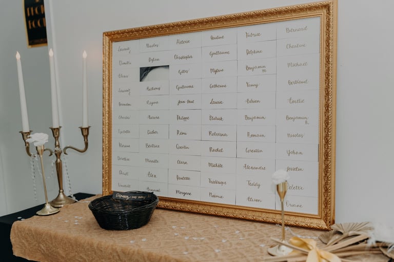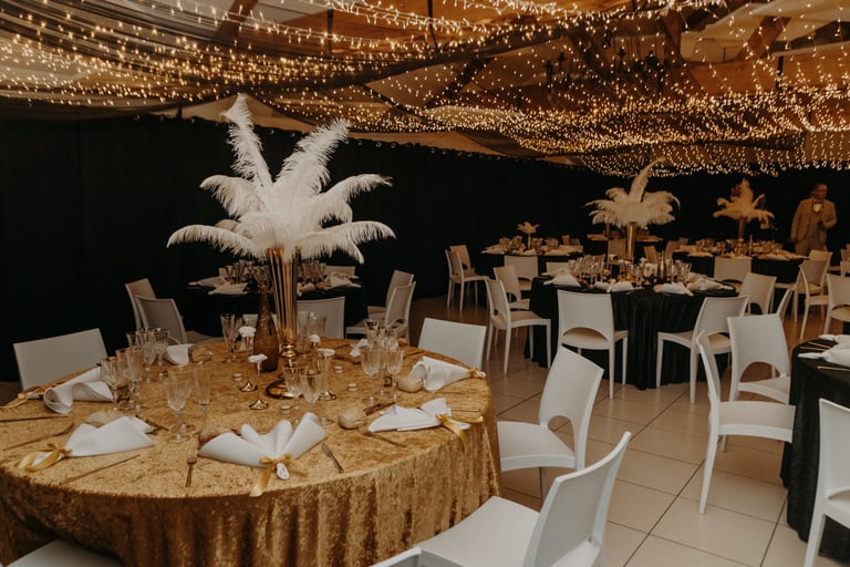 Retour sur la décoration d'un mariage élégant et durable en Normandie. Un thème Gatsby - Années Folles décliné avec des objets créés, chinés et loués pour une approche éco-responsable à la fois chic et consciente.